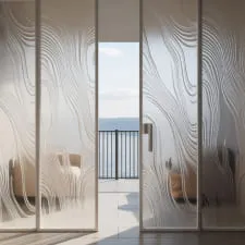 Light-bending panels, films, and textures that breathe with the space. They shift tone through the day, age like natural stone or wood, and replace static glass with a living surface.
